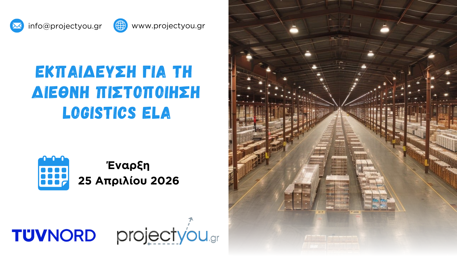 Η projectyou γιορτάζει 11 χρόνια επιτυχημένης εκπαίδευσης και προετοιμασίας για τη Διεθνή Πιστοποίηση Logistics ELA και συνεχίζει δυναμικά με τον 22ο κύκλο εκπαίδευσης.