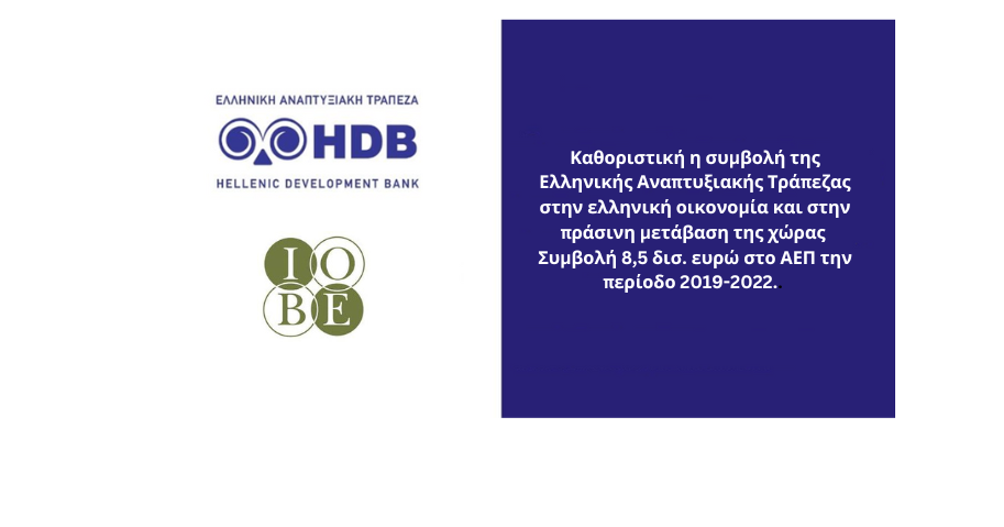 Τα σύγχρονα χρηματοδοτικά εργαλεία της Ελληνικής Αναπτυξιακής Τράπεζας HDB αποδεδειγμένα πλέον συμβάλλουν στον πράσινο μετασχηματισμό της μικρομεσαίας επιχειρηματικότητας, τη διατήρηση και την αύξηση θέσεων εργασίας και στην ποιοτική αλλαγή του παραγωγικού μοντέλου της χώρας. Αυτό είναι το συμπέρασμα της τακτικής επιμέτρησης της συνεισφοράς της HDB που ολοκλήρωσε πρόσφατα το Ίδρυμα Οικονομικών και Βιομηχανικών Ερευνών (ΙΟΒΕ).