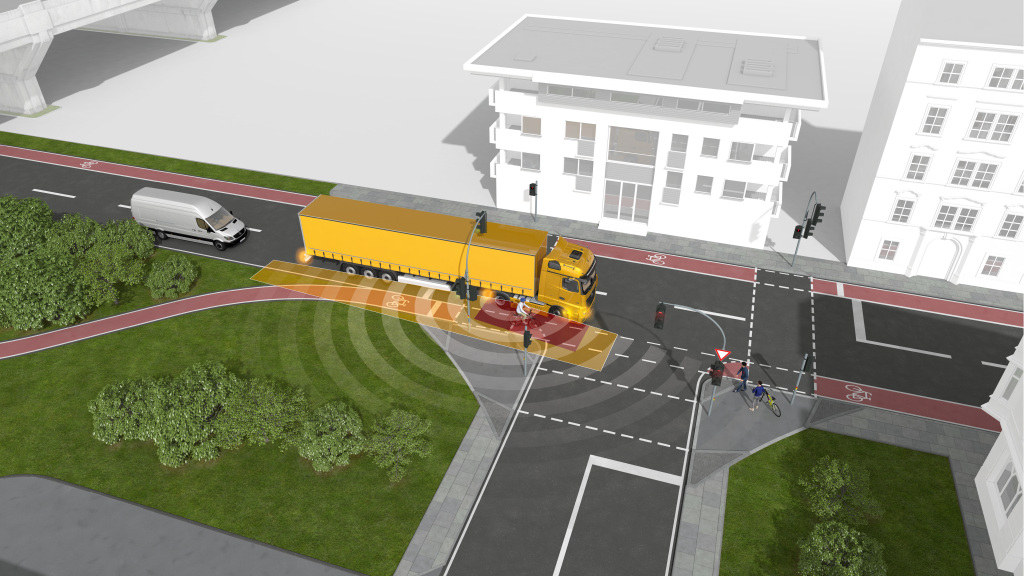 Η κυκλοφορία ενός βαρέος φορτηγού μέσα στην πόλη, όπου ενίοτε οι δρόμοι είναι στενοί και οι διασταυρώσεις περίπλοκες, αποτελεί πρόκληση για πολλούς επαγγελματίες οδηγούς. Ειδικά κατά τους ελιγμούς σε στροφές, ο οδηγός πρέπει να προσέχει τους φωτεινούς σηματοδότες, τις πινακίδες, τη διερχόμενη και διασταυρούμενη κυκλοφορία μπροστά από το όχημα, καθώς και πεζούς και ποδηλάτες που κινούνται στο πλάι.