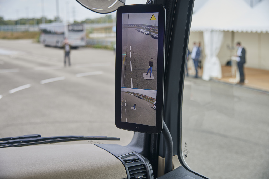 Εάν είναι εγκατεστημένο το MirrorCam, οι προειδοποιήσεις του Sideguard Assist προβάλλονται στη δεξιά οθόνη, με αποτέλεσμα όλες οι σημαντικές πληροφορίες να είναι συγκεντρωμένες σε ένα σημείο. Η Daimler Trucks είναι προς το παρόν ο μόνος κατασκευαστής που προσφέρει ένα τέτοιο σύστημα υποβοήθησης οδηγού, το οποίο είναι πλήρως ενσωματωμένο στην αρχιτεκτονική του οχήματος. Από τον Ιούνιο του 2021, θα διατίθεται για τις πολυάριθμες εκδόσεις μοντέλων του Arocs και το νέο σύστημα υποβοήθησης ασφάλειας: το Active Sideguard Assist.