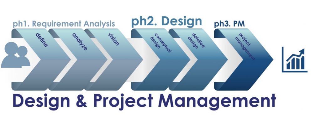 Ο σχεδιασμός συνοδεύεται από την πλήρη ανάληψη ευθύνης από έναν μόνο Manager ανά πελάτη για όλα τα τεχνικά, οικονομικά και επιχειρησιακά ζητήματα που μπορεί να προκύψουν, προσφέροντας πλήρεις υπηρεσίες Project Management και εγγύηση υψηλής ποιότητας.