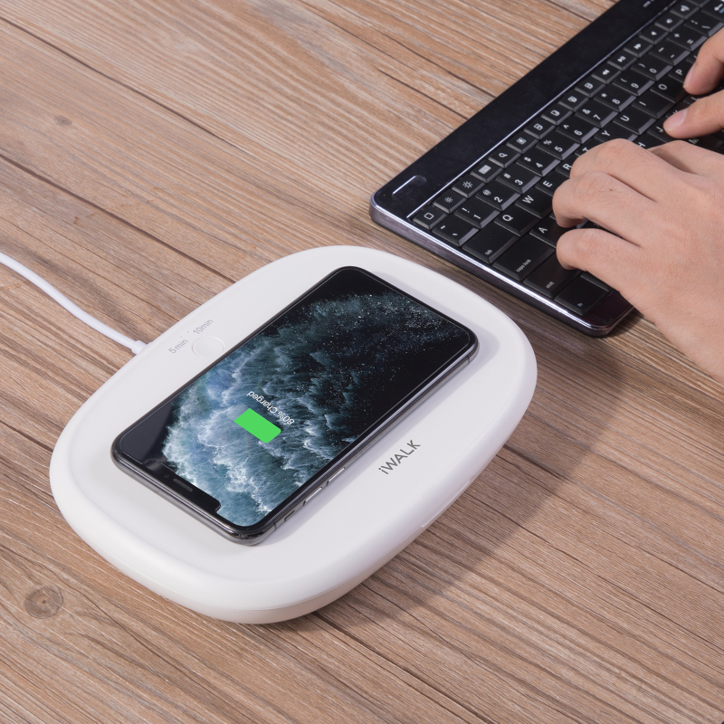 Η ελαφριά κάψουλα της iWALK λειτουργεί ταυτόχρονα ως pad για τη γρήγορη και ασφαλή φόρτιση κάθε smartphone, που υποστηρίζει τη λειτουργία ασύρματης φόρτισης, ανεξαρτήτως κατασκευαστή (έως 7,5W σε iOS και έως 10W σε Android συσκευές).
