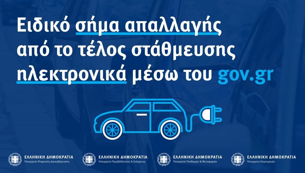 Με κοινή απόφαση του Υπουργού Επικρατείας και Ψηφιακής Διακυβέρνησης Κυριάκου Πιερρακάκη και των Υφυπουργών Εσωτερικών Θεόδωρου Λιβάνιου και Υποδομών και Μεταφορών Γιάννη Κεφαλογιάννη (ΦΕΚ Β 5570/17-12-2020), οι κάτοχοι ηλεκτροκίνητων οχημάτων μηδενικών ή χαμηλών ρύπων, θα έχουν από την 1η Ιανουαρίου 2021, τη δυνατότητα να εκδίδουν μέσω gov.gr, το ειδικό σήμα απαλλαγής από την υποχρέωση καταβολής τελών στάθμευσης στα κέντρα των πόλεων.