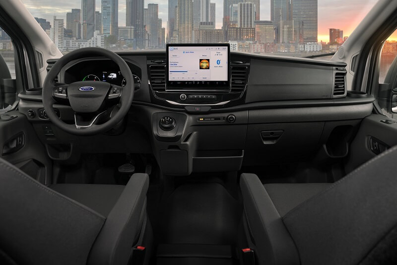 Το E-Transit εισάγει το σύστημα επικοινωνίας και πληροφοριών SYNC 4 στην γκάμα επαγγελματικών οχημάτων της Ford στην Ευρώπη, που προσφέρει διπλάσια υπολογιστική ισχύ από το SYNC 3 και ελέγχεται μέσω μιας ανθεκτικής, αντιθαμβωτικής και διαισθητικής στη χρήση οθόνης αφής 12 ιντσών.
