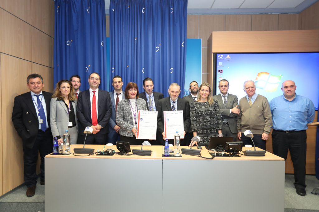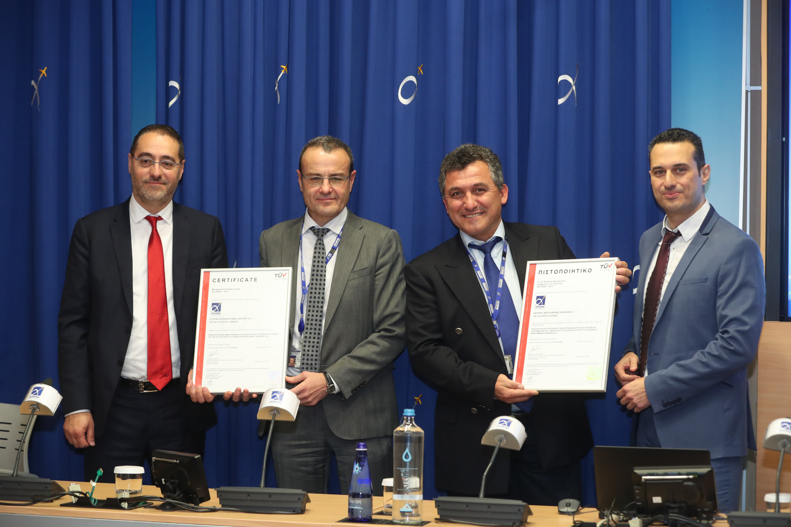 Το πιστοποιητικό EN ISO 50001 απονεμήθηκε από τον CEO της TÜV AUSTRIA HELLAS, Ιωάννη Καλλιά στον Κώστα Θεοδωρογιαννόπουλο, Διευθυντή Τεχνικών Υπηρεσιών του Διεθνούς Αερολιμένα Αθηνών σήμερα, Τρίτη 16 Ιανουαρίου, στο Κέντρο Τύπου του αεροδρομίου της Αθήνας.