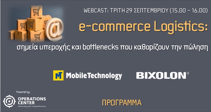 Το Operations Center διοργανώνει την Τρίτη 29 Σεπτεμβρίου (15:00-16:00) το δωρεάν παρακολούθησης ωριαίο webcast με θέμα «e-commerce Logistics: σημεία υπεροχής και bottlenecks που καθορίζουν την πώληση». Η μετάδοση θα γίνει μέσω της πλατφόρμας Zoom.
