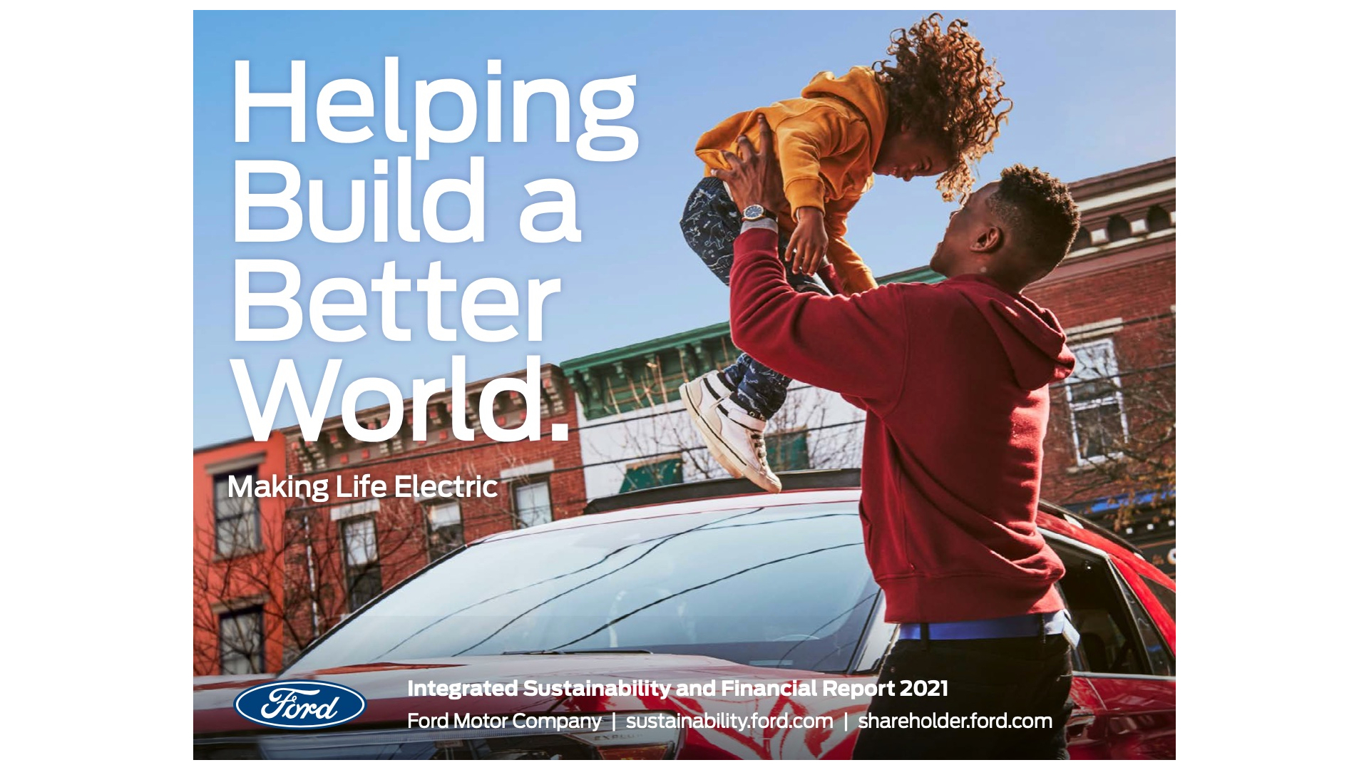 Θέλοντας να συμβάλλει στη δημιουργία ενός καλύτερου κόσμου για τις μελλοντικές γενιές, η Ford ανακοίνωσε σημαντικούς στόχους στην περίληψη της ενιαίας έκθεσης βιωσιμότητας / οικονομικής αναφοράς 2021 (Integrated Sustainability & Financial Report), καθώς και ορόσημα που θα βοηθήσουν την εταιρεία να πετύχει τον στόχο του ουδέτερου ισοζυγίου άνθρακα μέχρι το 2050.
