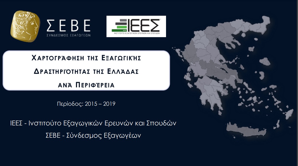 Σημαντική απόκλιση των περιφερειακών ανισοτήτων καταγράφηκε στο διάστημα 2018-2019 σύμφωνα με τη μελέτη του ΙΕΕΣ του ΣΕΒΕ με τίτλο «Χαρτογράφηση της εξαγωγικής δραστηριότητας της Ελλάδας ανά περιφέρεια». Για ακόμη μία χρονιά, το ΙΕΕΣ-Ινστιτούτο Εξαγωγικών Ερευνών και Σπουδών του ΣΕΒΕ κατάρτισε την εν λόγω μελέτη για το διάστημα 2015-2019, από την οποία προέκυψαν σημαντικά συμπεράσματα αναφορικά με τις εξαγωγικές επιδόσεις όλων των ελληνικών περιφερειών και των περιφερειακών ενοτήτων. Μάλιστα, ο ΣΕΒΕ αποτελεί τον μοναδικό φορέα που επεξεργάζεται και αναλύει τα στοιχεία των εμπορευματικών συναλλαγών που πραγματοποιούν οι 13 περιφέρειες της χώρας και οι 52 περιφερειακές ενότητες. Η μελέτη στοχεύει στην ανάδειξη των συγκριτικών πλεονεκτημάτων της κάθε περιφέρειας σε κλαδικό επίπεδο, αναλύει τις χώρες με τις οποίες πραγματοποιεί εμπορικές συναλλαγές, ενώ εντοπίζει τα αδύναμα σημεία που χρήζουν βελτίωσης. Πρόκειται για μία ad hoc μελέτη για το επίπεδο εξωστρέφειας όλων των ελληνικών περιφερειών ξεχωριστά, αποτελώντας ένα απαραίτητο εργαλείο για την σκιαγράφηση και βελτίωση της εξαγωγικής επίδοσης των ελληνικών περιφερειών.