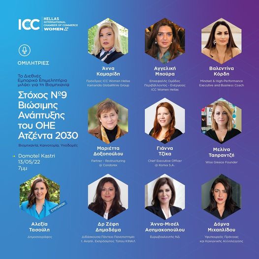 Η Ομάδα Βιομηχανίας του «ICC Women Hellas» διοργανώνει την Παρασκευή 13 Μαΐου εσπερίδα με θέμα «Το Διεθνές Εμπορικό Επιμελητήριο για τη Βιομηχανία. Αναλύοντας τον στόχο Νο9 Βιώσιμης Ανάπτυξης του ΟΗΕ/ Ατζέντα 2030 για την Επιχειρηματικότητα», στις 7 το απόγευμα στο DOMOTEL Καστρί.