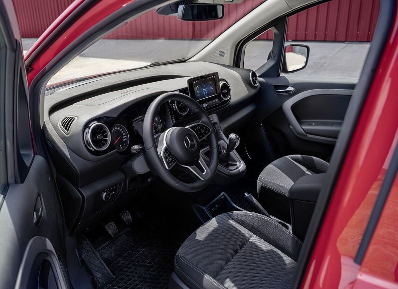 Για την αντιπροσωπευτική εμφάνιση φροντίζουν, παραδείγματος χάριν, οι ζάντες Design 40,6 cm (16 ιντσών) και οι βαμμένες στο χρώμα του αμαξώματος λαβές των θυρών, καθώς και το βαμμένο κάλυμμα στη ράγα της συρόμενης πόρτας. Το ρυθμιζόμενου ύψους κάθισμα οδηγού, το σύστημα κλιματισμού, το ηχοσύστημα Mercedes-Benz, ο εσωτερικός φωτισμός LED και οι αποθηκευτικοί χώροι αυξάνουν τα επίπεδα άνεσης κατά την οδήγηση και την εργασία. Το πλαστικό δάπεδο στον χώρο φόρτωσης προστατεύει από περιττές ζημιές και διευκολύνει τον καθαρισμό του χώρου φόρτωσης.