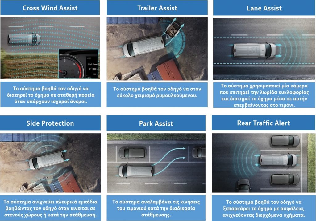 Συνοπτικά, τα συστήματα ασφάλειας στο νέο Transporter παρουσιάζονται στον πίνακα που ακολουθεί.