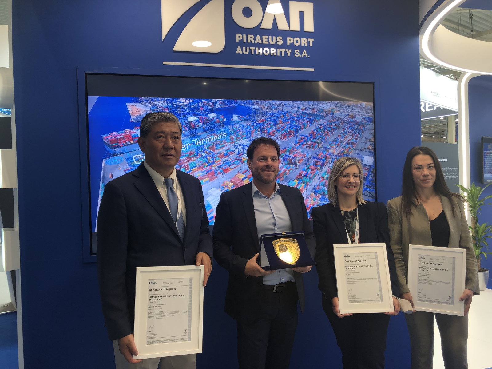 Στη τελετή που πραγματοποιήθηκε κατά τη διάρκεια της διεθνούς ναυτιλιακής έκθεσης Ποσειδώνια, ο Capt. Weng Lin, Deputy CEO του ΟΛΠ, παρέλαβε τις πιστοποιήσεις για τη Διαχείριση της Ποιότητας ISO 9001:2015, την Περιβαλλοντική Διαχείριση ISO 14001:2015 και τη Διαχείριση της Ενέργειας ISO 50001:2018 από τον κ. Stuart Kelly, Global Sales Director, Business Assurance της LRQA. Η τριπλή πιστοποίηση καταδεικνύει τη δέσμευση της εταιρείας για την τήρηση βέλτιστων πρακτικών για την ποιότητα, την περιβαλλοντική διαχείριση και τη διαχείριση ενέργειας.