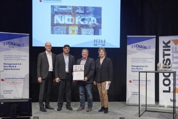 Schaeffler was also a finalist for the Supply Chain Management Award 2019 and was represented by Christian Schewtschenko (Head of Operations Strategy; 2nd from right) and his team, Nokia. The jury members Dr. Petra Seebauer (Managing Director EUROEXPO Messe-und Kongress-GmbH and Publisher LOGISTIK HEUTE; right) and Harald Geimer (Partner at bei PwC Management Consulting; left.) congratulate cordially.