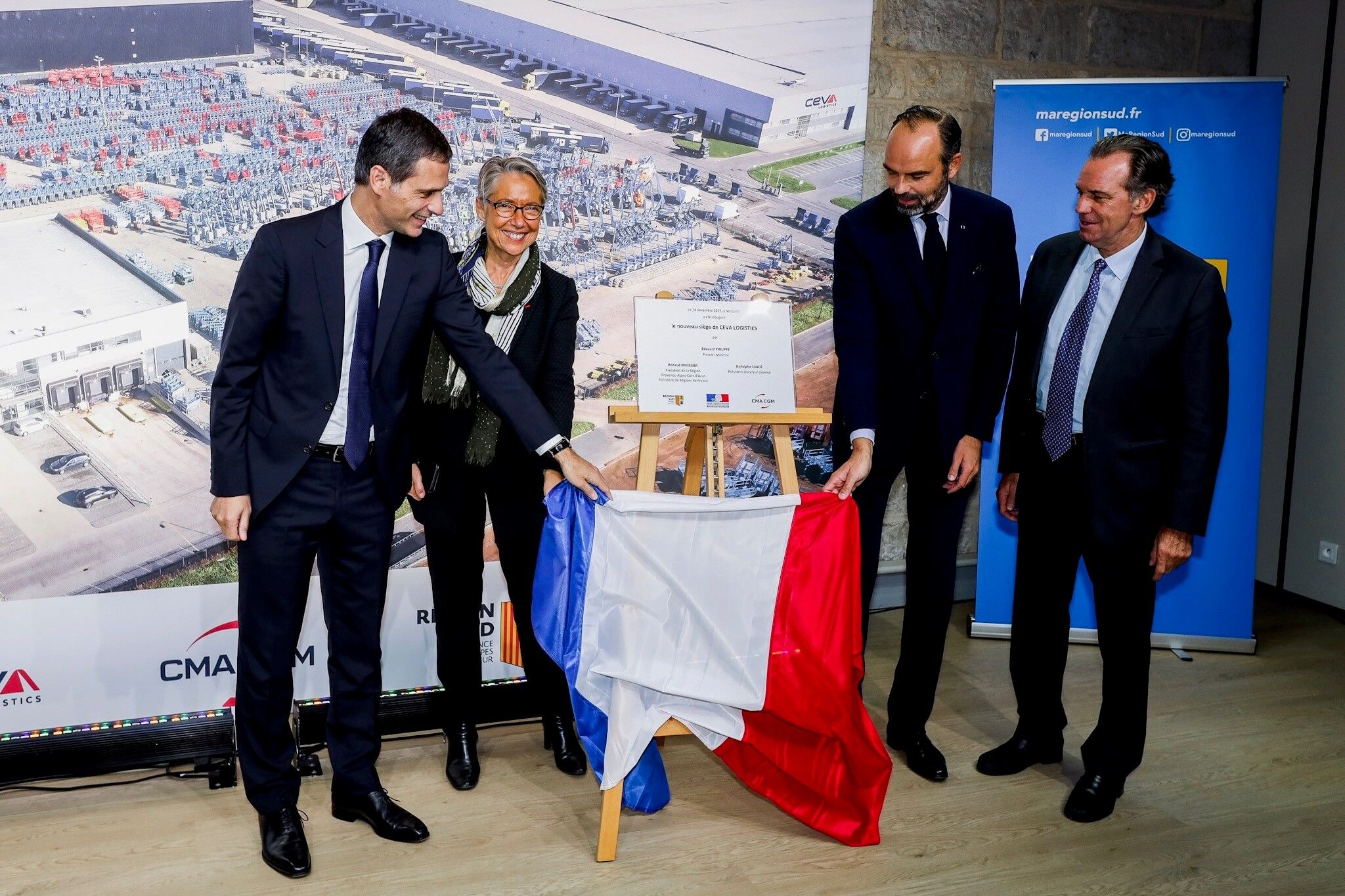 CEVA Logistics new global headquarters in Marseille was officially opened by the Prime Minister of France, Edouard Philippe and the President of the French Region “Sud”, Renaud Muselier accompanied by CEVA’s CEO, Nicolas Sartini, and Rodolphe Saadé, Chairman and CEO, CMA CGM Group.