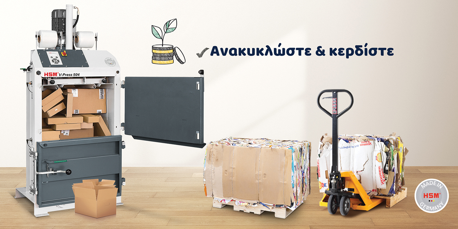 Η Kapelis Packaging σε συνεργασία με τη γερμανική εταιρεία HSM προσφέρει την τεχνολογικά εξελιγμένη και πλήρως αποδοτική σειρά μηχανημάτων VPress.  Αποτελούν την πρώτη επιλογή σε πρέσες χαρτιού και πλαστικού, με ασύγκριτη ποιότητα κατασκευής, εργονομικό σχεδιασμό, μεγάλο εύρος εφαρμογών και με δυνατότητα μείωσης όγκου ανακυκλώσιμων απορριμμάτων έως 95%.