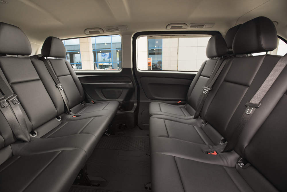 Η επένδυση όλων των καθισμάτων είναι από μαύρο τεχνητό δέρμα. Επιπλέον, τα καθίσματα του χώρου επιβατών προσαρμόζονται σε κάθε απαίτηση χρήσης με τη δυνατότητα αντιστροφής της μεσαίας σειράς. Οι δύο σειρές καθισμάτων των πίσω επιβατών αποτελούνται από πάγκους τριών αναπαυτικών θέσεων με ζώνες ασφαλείας τριών σημείων, σύστημα στερέωσης παιδικού καθίσματος ISOFIX και προσκέφαλα.