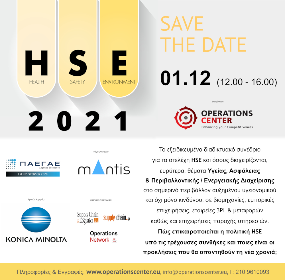 To Operations Center διοργανώνει την 1/12 το διαδικτυακό συνέδριο “HSE 2021” για τις επικαιροποιημένες πολιτικές Health, Safety & Environment